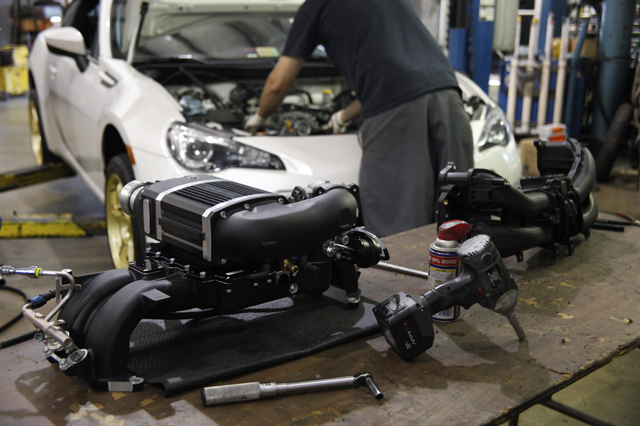 Innovate supercharger kit. On my daily commute, which is mixed driving, with a good amount of stop-and-go, I used to get as much as 28.5 mpg pre-supercharger. Since the supercharger install, I have seen 26.5 mpg when I stayed out of boost as much as possible. If I drive like a hooligan and flat-foot it every time I leave a stop light, I see more like 20 mpg. (Of course, when I drove like a nut before the supercharger I would take a pretty big MPG hit, too.) So basically, figure a 2 mpg penalty from the supercharger install -- a small price to pay for a 37% increase in horsepower!
